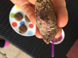Raw Choc Black Bean Brownie Bites with cherry fro-yo (frozen cherries and greek yoghurt) following intense leg day!