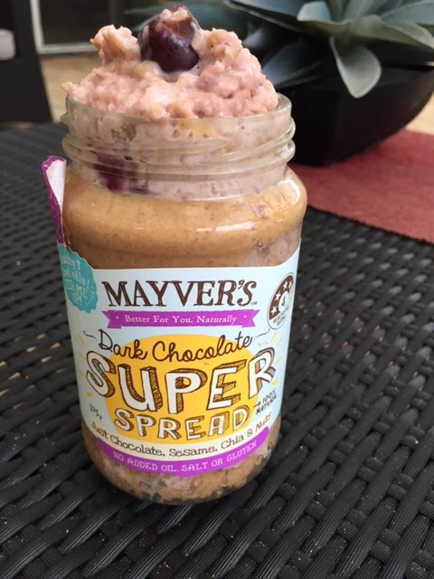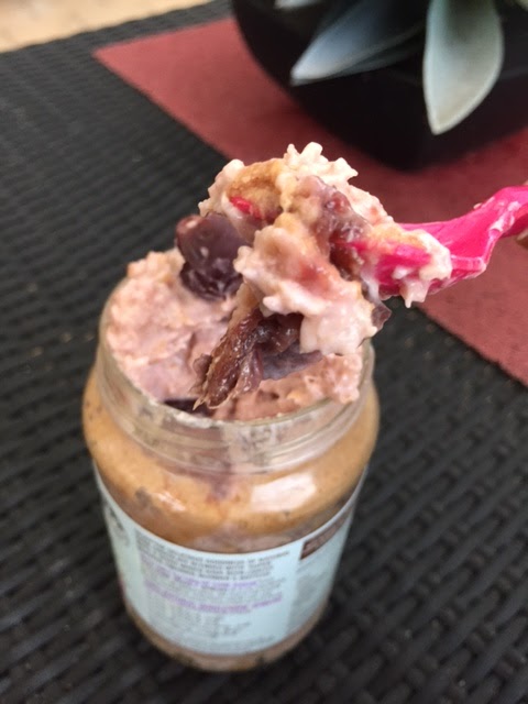 Come to me Cherry Cheesecake Oats in leftover home-made almond butter!!