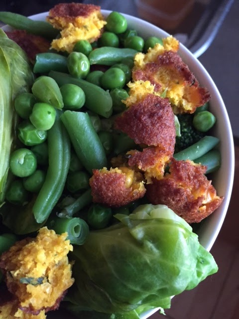 And this one was simply steamed greens and curried pumpkin and corn falafel- nom!