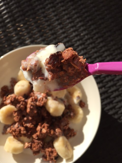 So, I whipped up a batch of rich, dark choc granola to make a killer yoghurt bowl that could be thrown together in two minutes after I finished assassinating my arms: