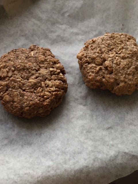 I chose to make one cookie with my home-made nut butter and the other with bought peanut butter and guys.... whilst the peanut cookie was good, you have no idea how amazing this home-made nut butter is in cookie form!!