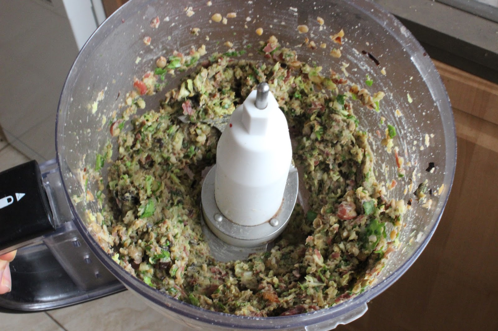 4. Place the sauteed veg, beans, lentils, spinach and nutritional yeast and chili flakes into a food processor and process to combine (not too much, you still want some bean and veg chunks for interesting texture!)