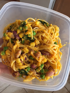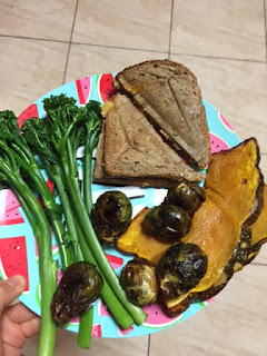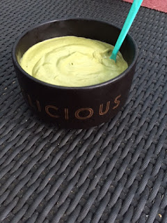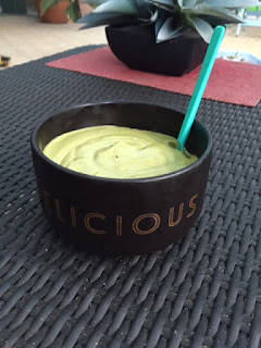 With a side of mango/zucchini fro-yo which was whipped up in record time after I'd rushed into the kitchen post-15km, red-faced and panting and simply chucking a handful of frozen mango, frozen zucchini and greek yoghurt into the Vitamin and whizzing until smoothy smooth!