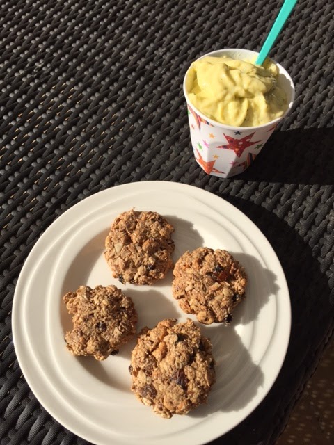 This was such a great smoothie- made with 1 frozen banana, handful frozen zucchini, some frozen mango, pineapple and mixed berries, 2 big handfuls mixed salad greens, soaked oats (like above), 3 spoons greek yoghurt and water- so, so tasty!