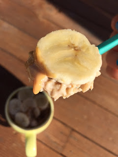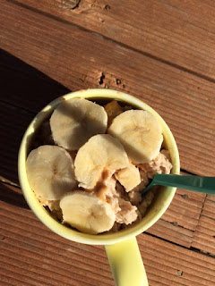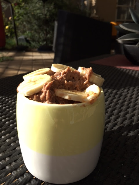 This was my favourite oat combo of the minute- my vegan vanilla protein zoats (zucchini oats) with nutbutter throughout and leftover banana slices on top.