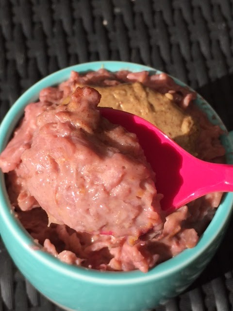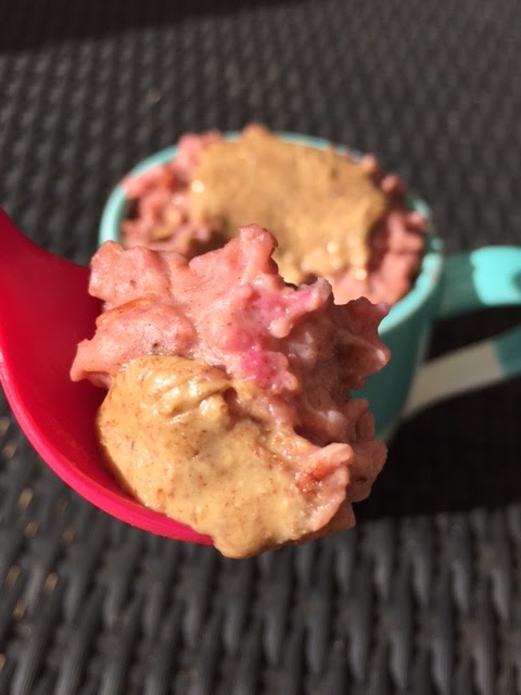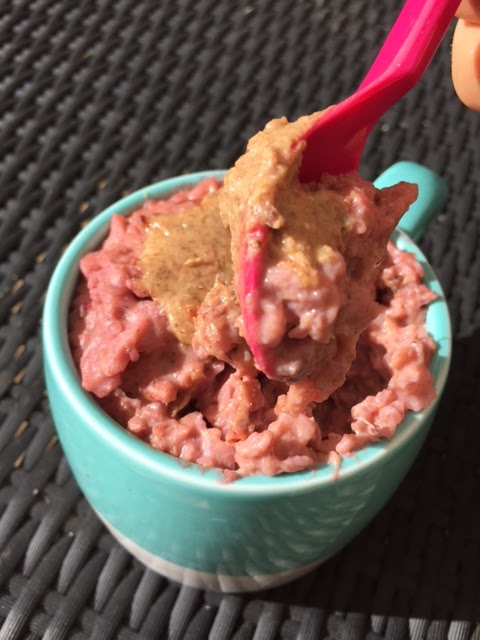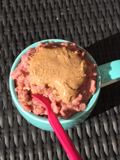 A spoon or two of greek yoghurt stirred in at the end and then topped and tailed with almond butter- trul;y the perfect nut butter to go with these sweet and tangy oats!