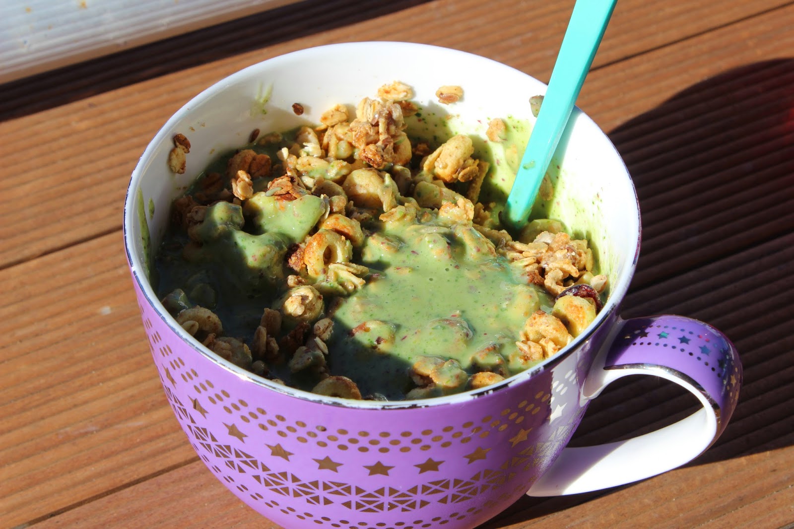 In keeping with the breakfast theme, I seem to also prefer eating my smoothies from bowls, rather than typical glasses too and generally serve them up nice and thick in my pretty purple mug: