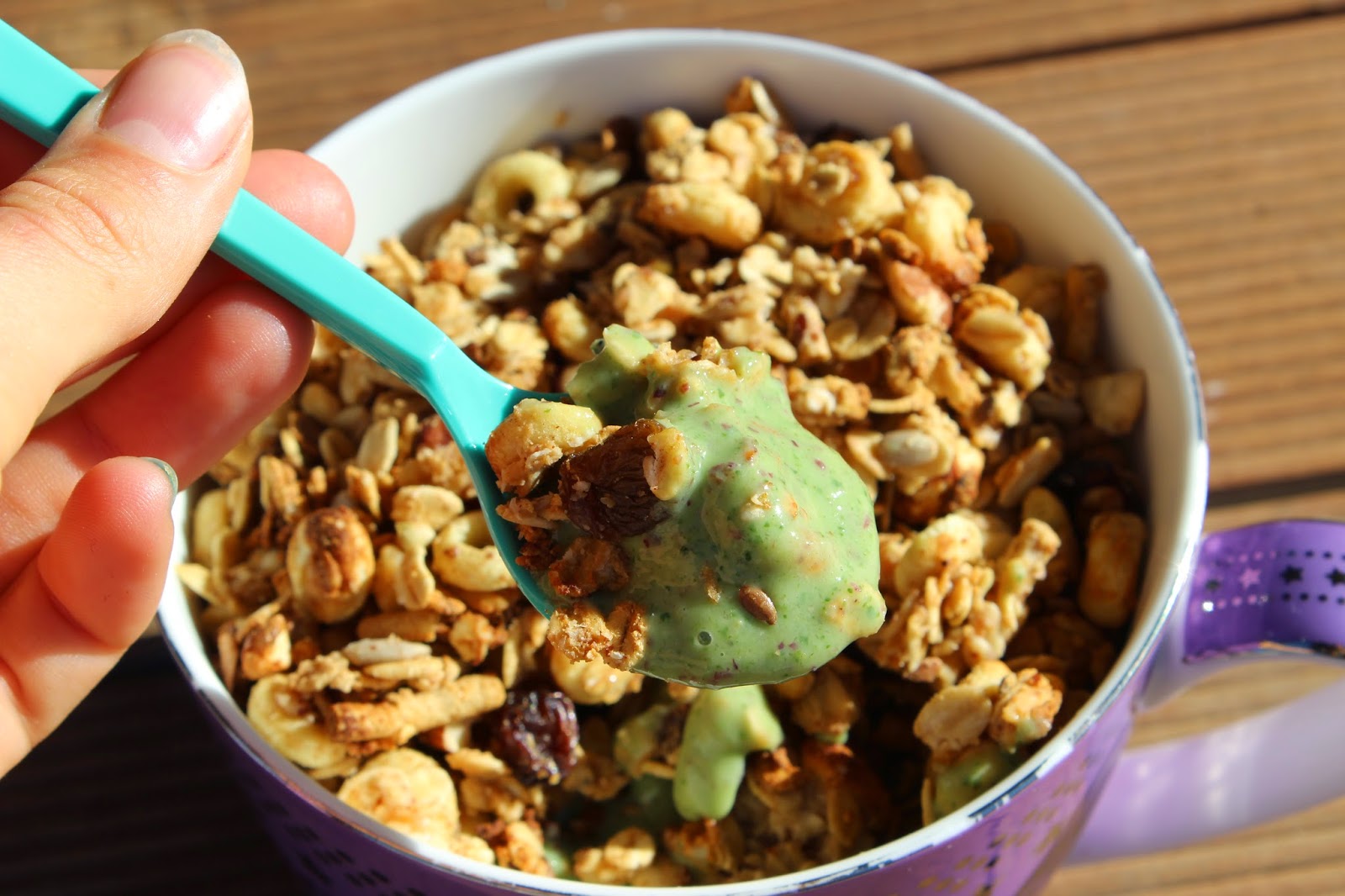 There is a smoothie under there I promise! On top is just some nutty granola: