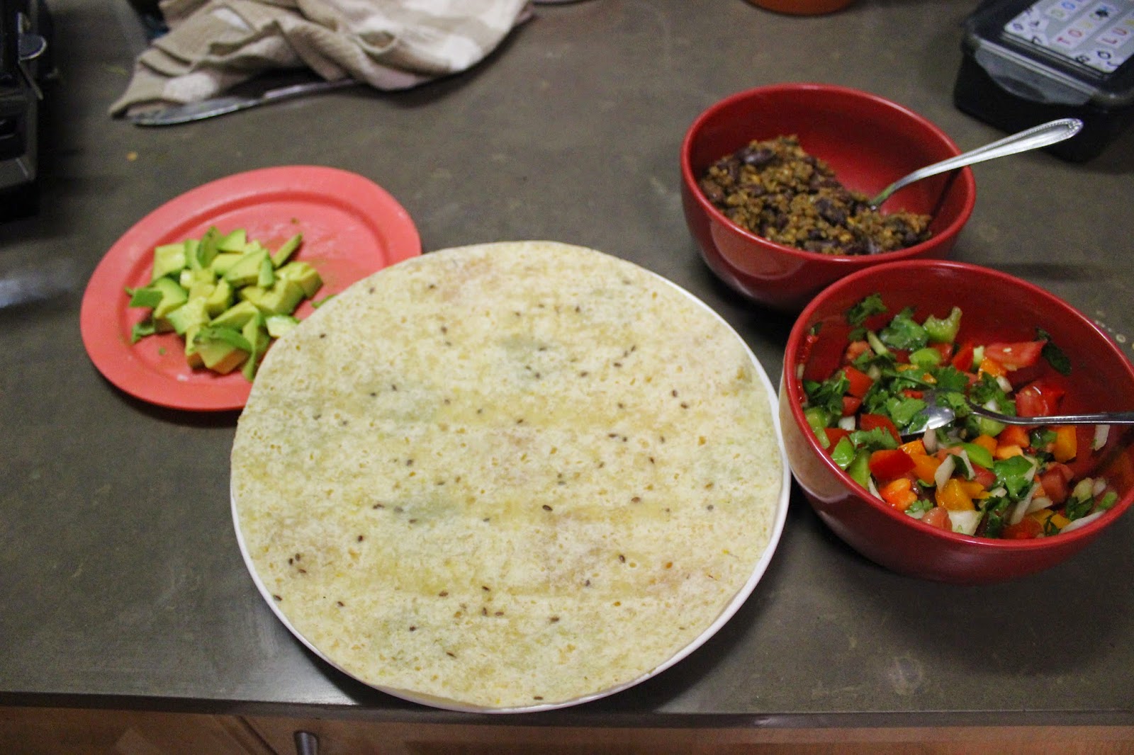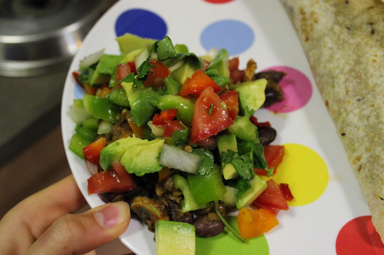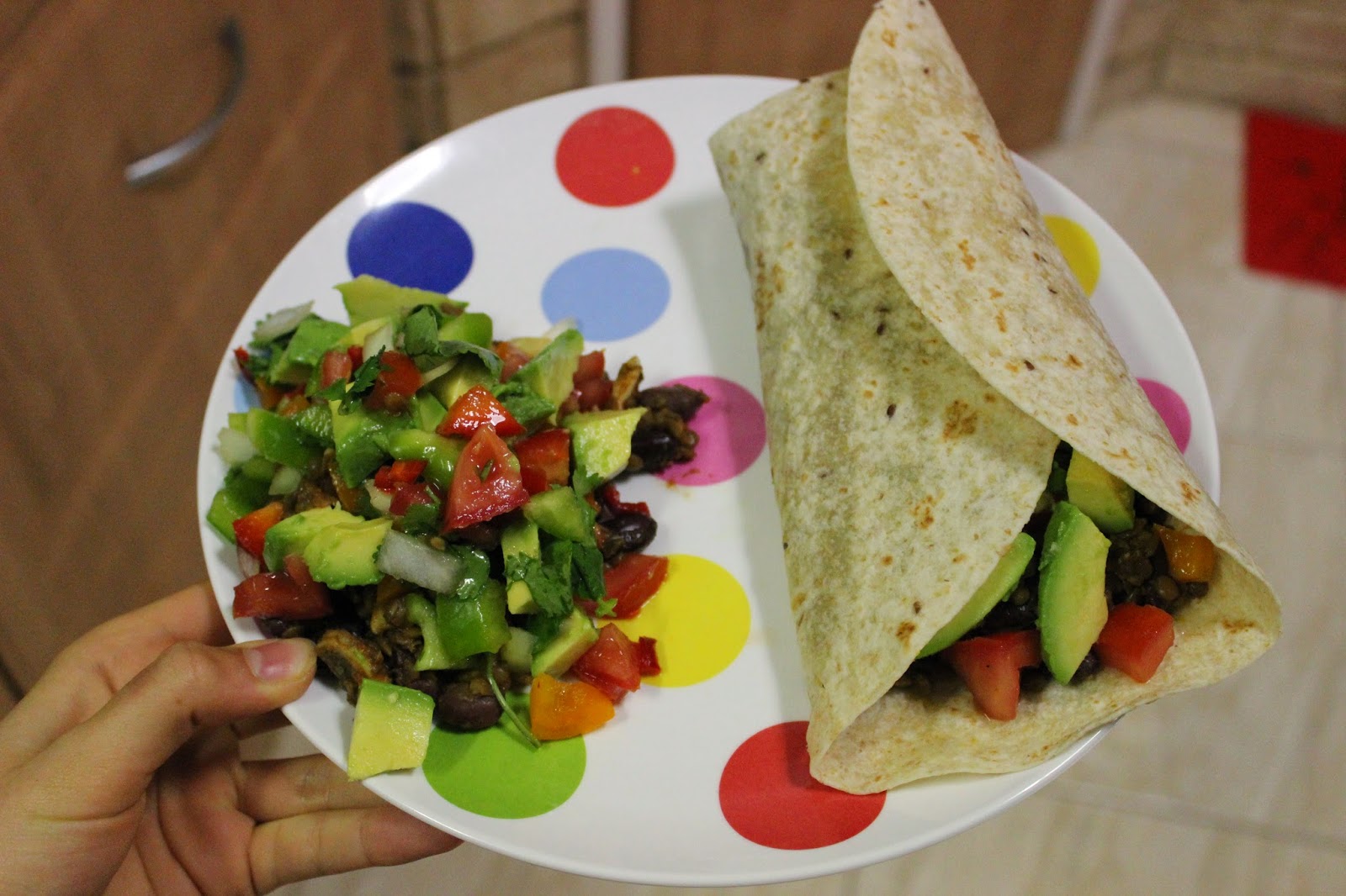 You may have guessed already, but I love Mexican food. Nachos, tacos, burritos, guacamole, salsa, quesadillas, corn bread- I could go on and on. So the other day when I was craving those firey Mexican flavours, I headed to the pantry, pulled oat the canned beans and lentils, Mexican chili powder and tortilla, along with a trip to the fridge for some mushrooms, capsicums, lemon, tomatoes, chili and fresh coriander- I was ready!