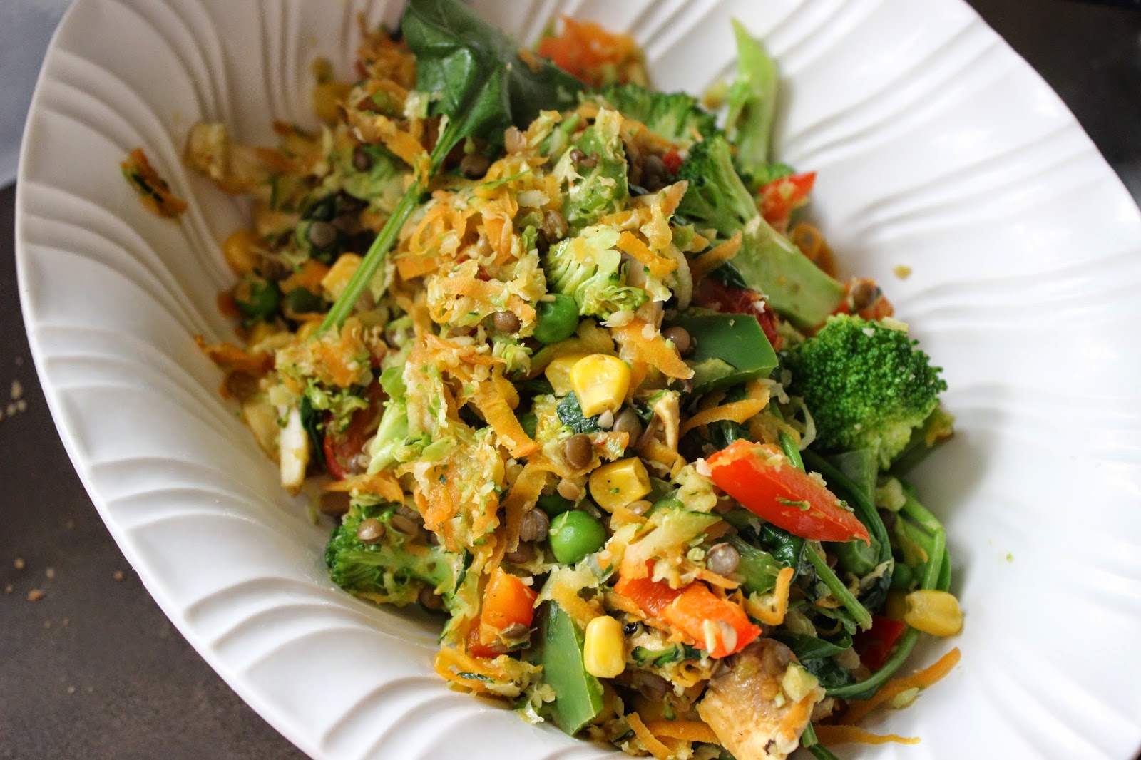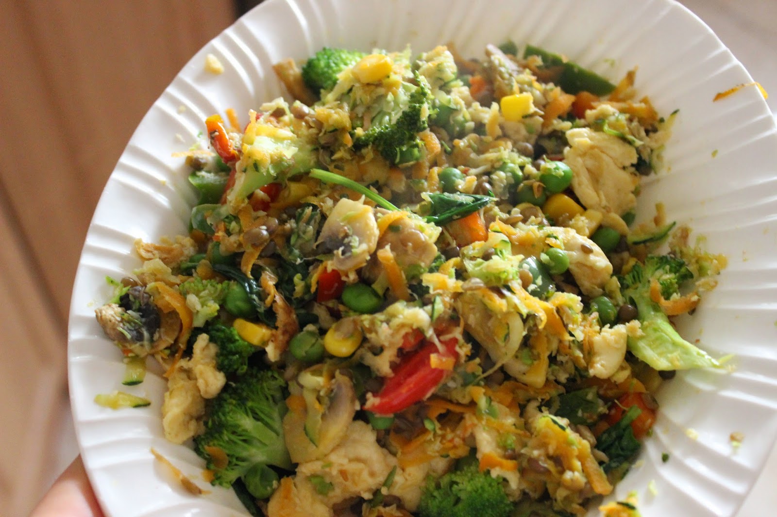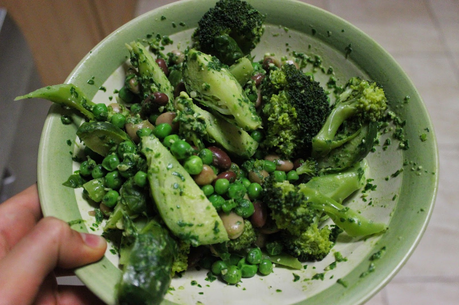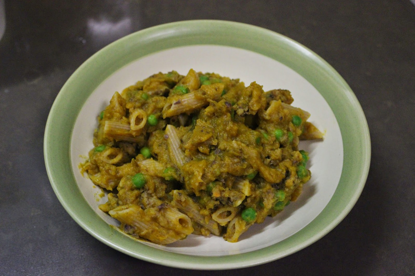 To pump it up I added some wholemeal pasta, peas and garlic tofu: