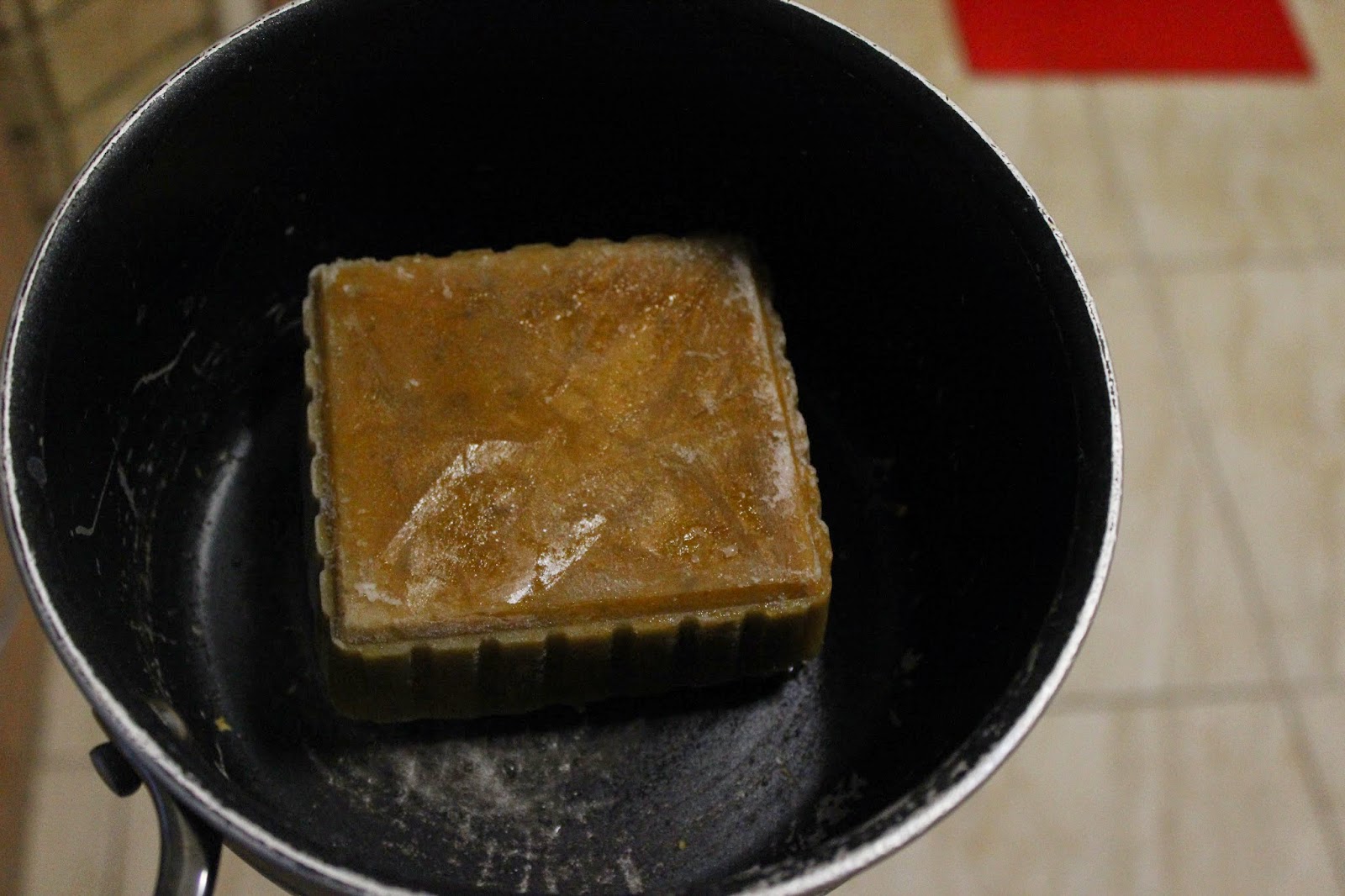 No, contrary to the box it is not a container of frozen cheese. It's a block of some pumpkin soup I made a few weeks ago. So, I plonked it in a saucepan, heated it up and voila- soup!