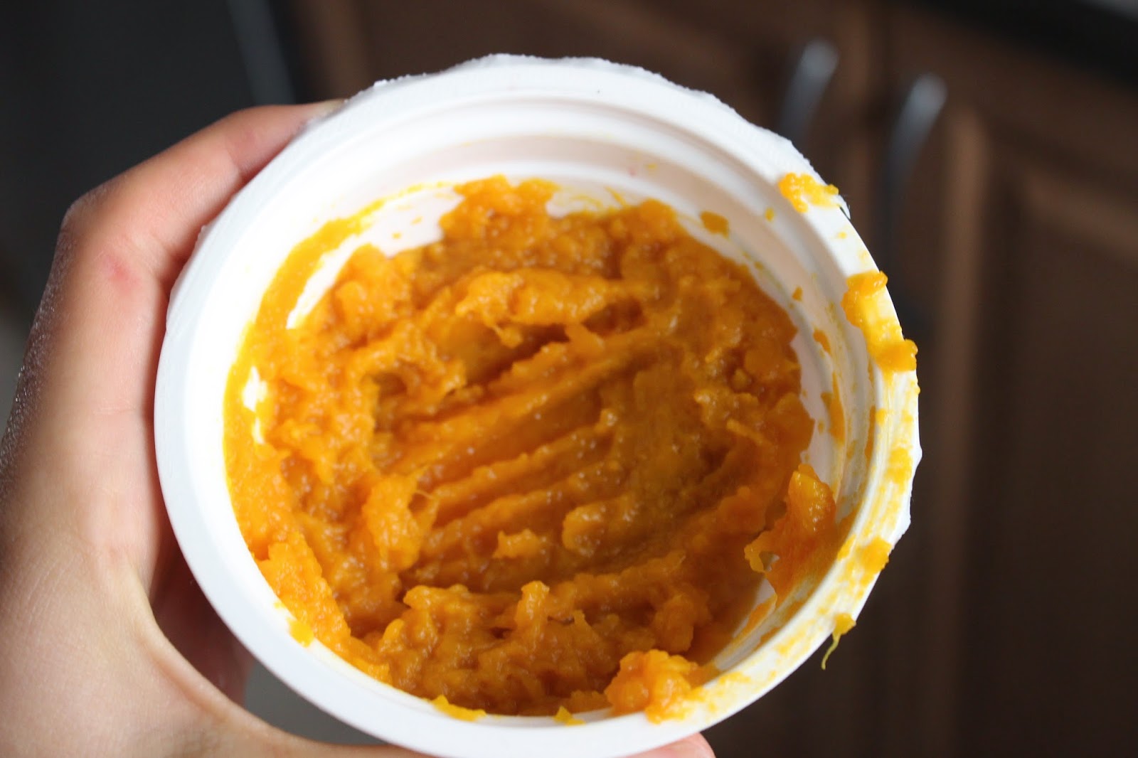 1. If using fresh pumpkin, cut up and steam for around 25 mins until nice and soft- then mash it up!