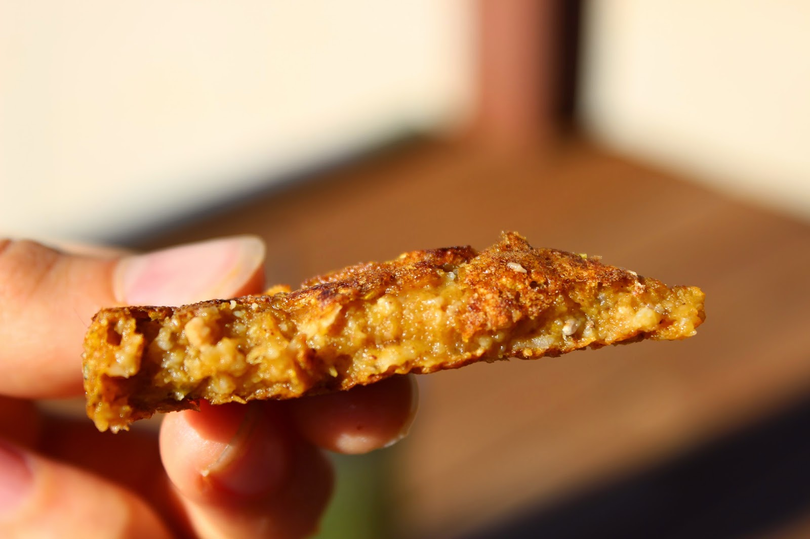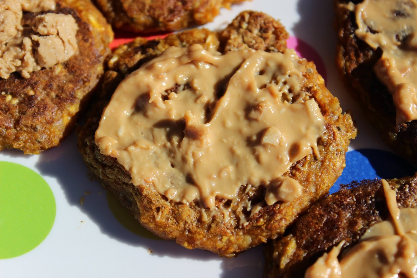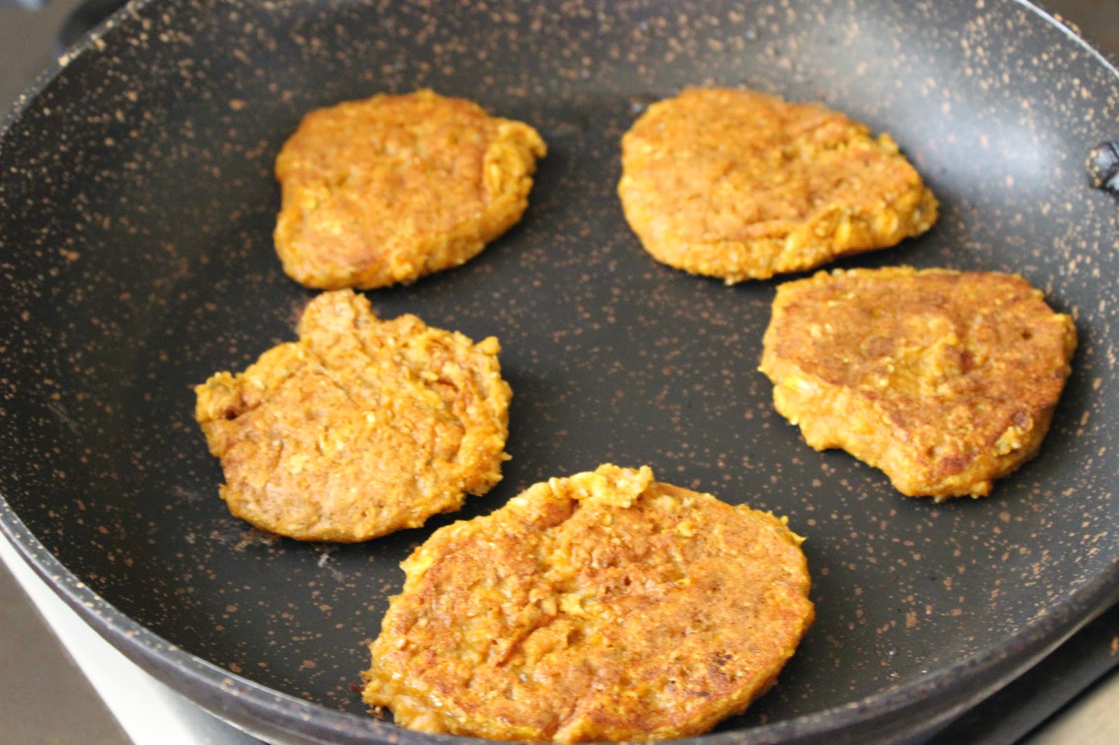 4. Heat a non-stick frypan with some oil/ butter over medium heat and then spoon on your mix (probably stick to smaller pancakes as these guys could fall apart if made too big without the eggs.)