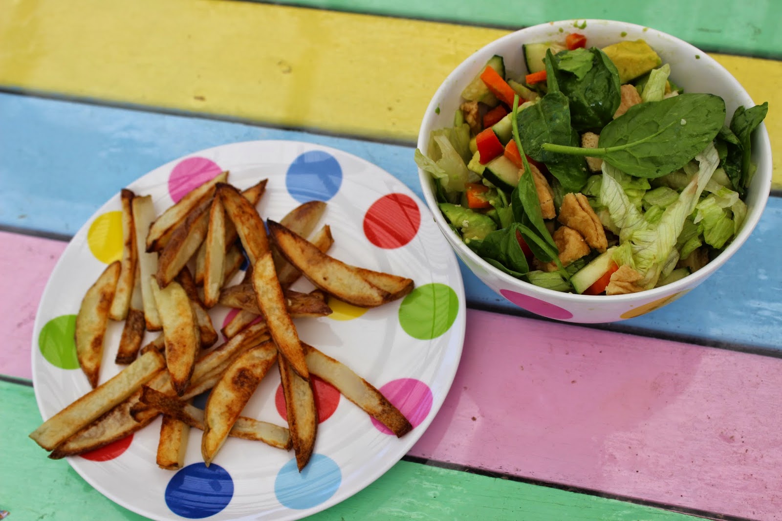 Yesterday's lunch- a salad with some baked potato fries (this is definitely not a Steph-sized lunch!