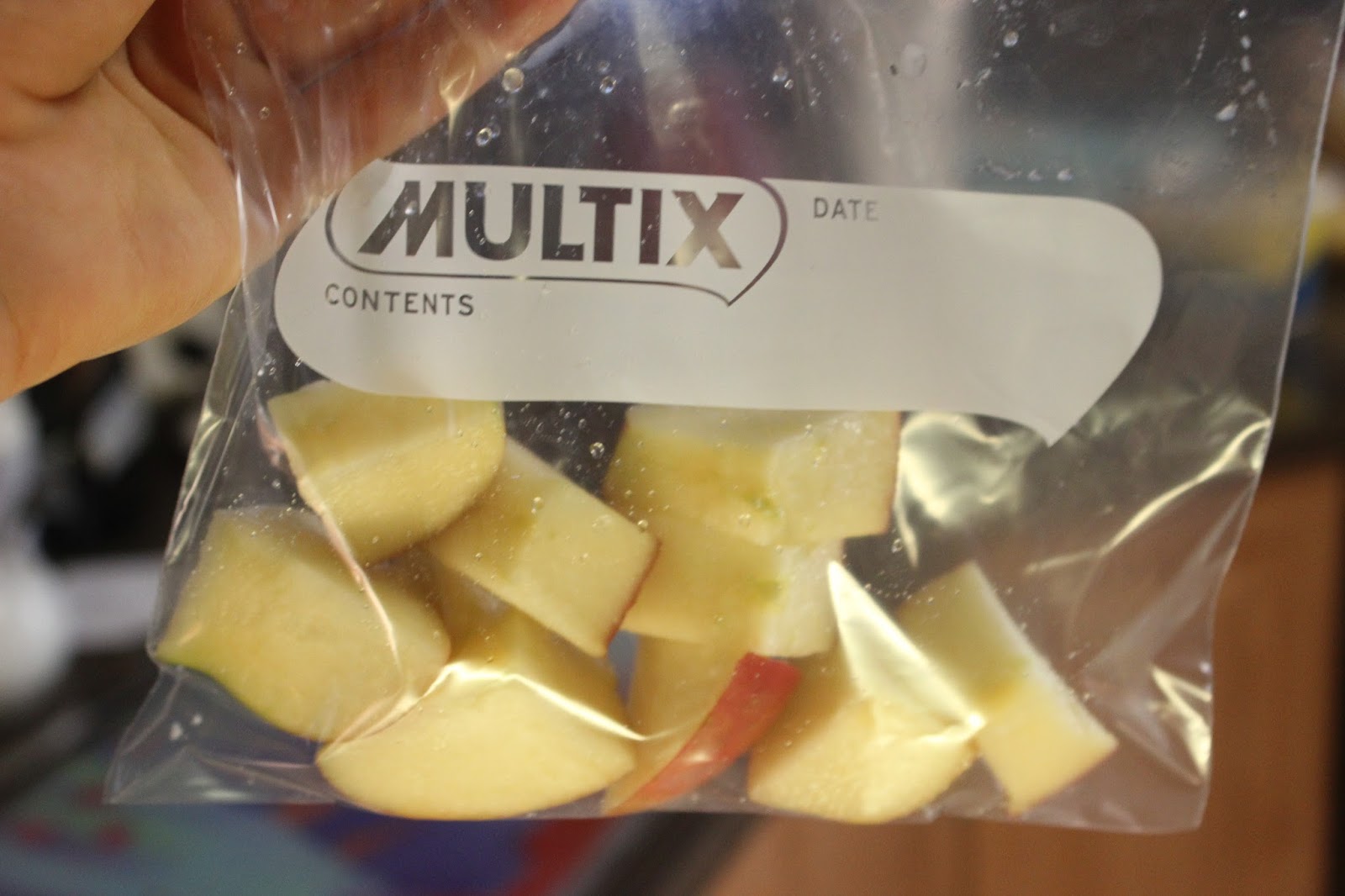 Step 8. Place in freezer for 20-30 mins (I also chopped up the remaining apple to freeze for later experiments, but you could chomp on that now if you're famished and are dreading the idea of waiting 30 minutes for breakfast!
