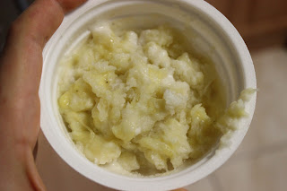 Step 6. Add in the heated banana and coconut mixture, mash to combine: