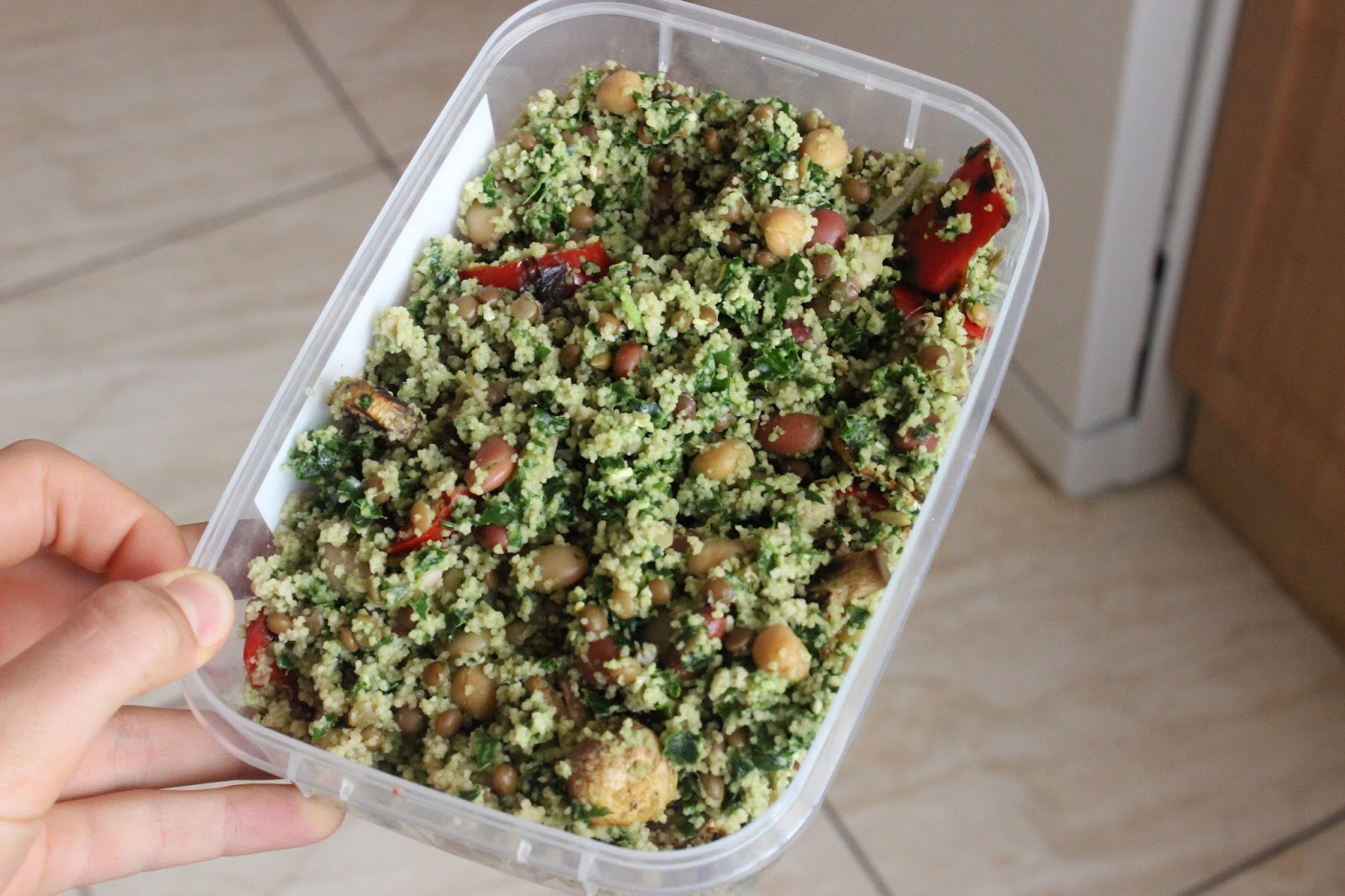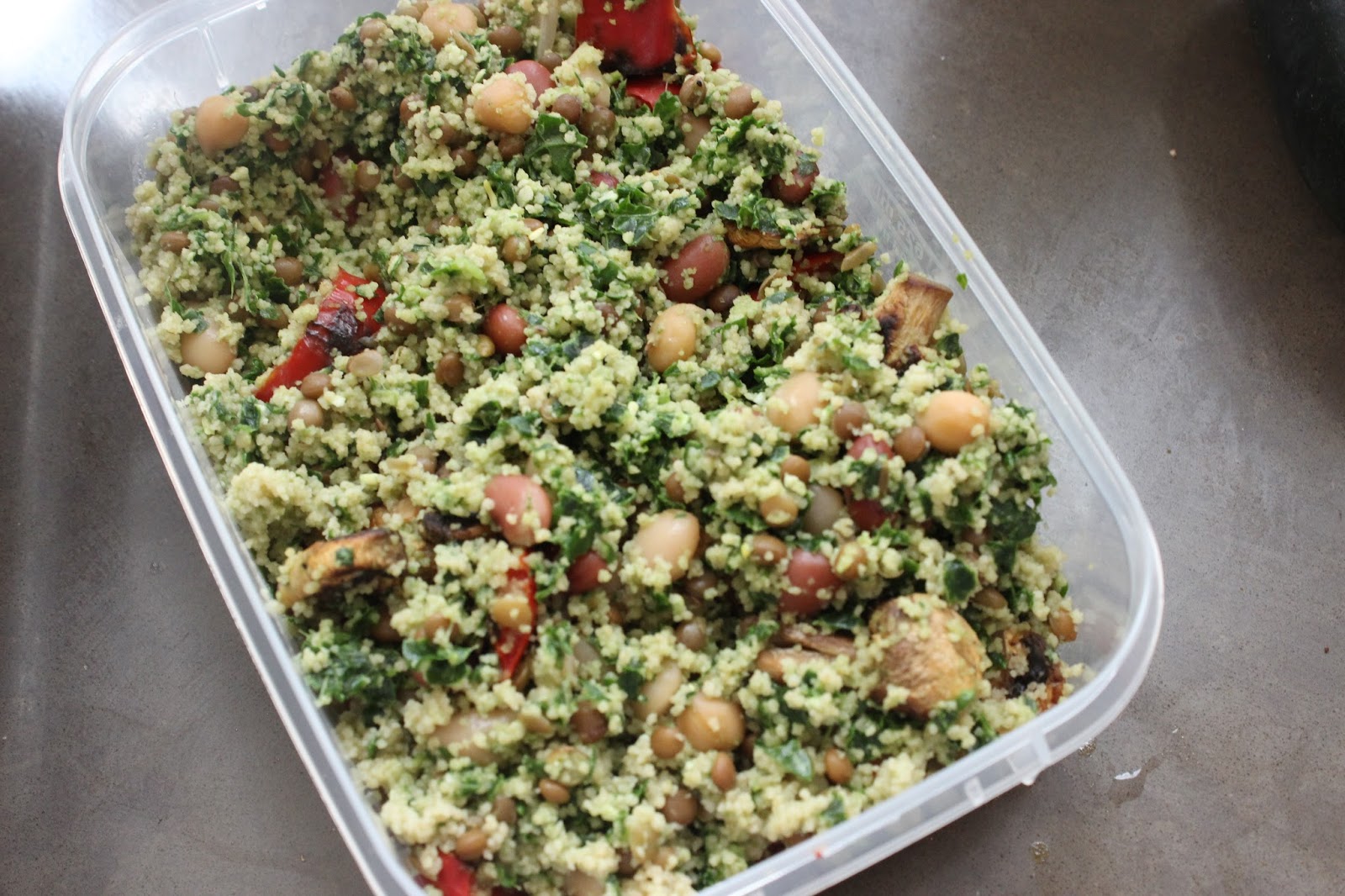 This container of goodness was some wholemeal cous cous, mixed with 4-beans, grilled capsicum and mushrooms and some kale pesto!!