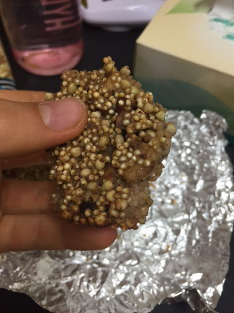 One cookie was made with oats, oat bran, wholegrain cheerios with headted up peanut butter and almond milk rubbed in, the other with the same ingredients but almond butter heated up with almond milk and rubbed together.