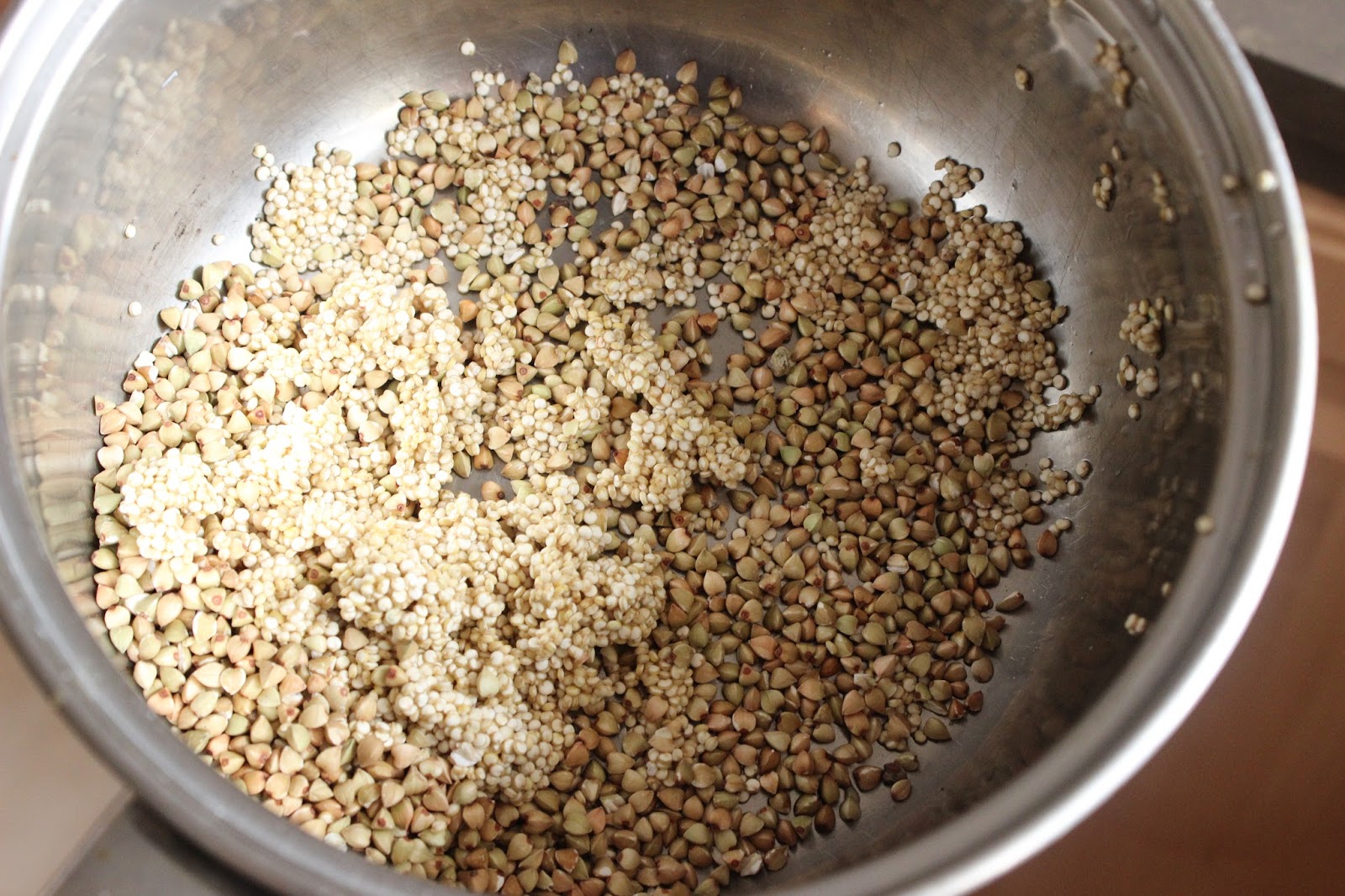 So when I needed a bake and then freeze-ahead recipe (ok, it didn't have to be bake, but the chocolate fudge brownie was getting a little old- though still so, so tasty!!) but wasn't really feeling the oats (I think I'd had oats about every day for the past week!) so instead I rummaged through my pantry shelf and pulled out some quinoa and buckwheat groats. Let's cook!